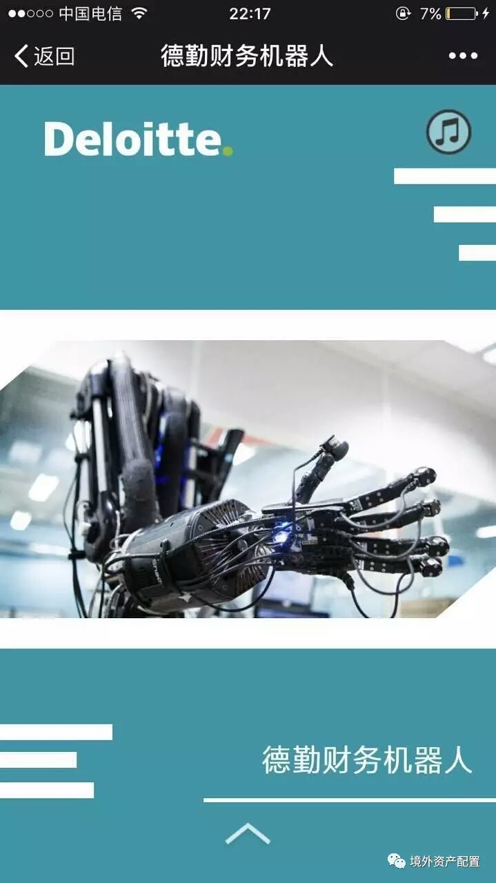“德勤財務機器人”吹響了財務會計審計行業革命的號角:德勤最新開發的財物機器人,一個機器人可以頂替15個財務的工作,而且可以每週24小時*7日的工作。