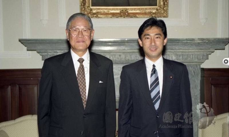 照片是1994年9月當時的總統李登輝接見來訪的日本眾議員之一的岸田文雄。