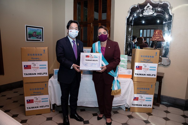 賴清德副總統於當地時間27日下午(臺北時間28日上午),與宏都拉斯共和國總統卡蕬楚(Xiomara Castro)在宏國總統府舉行雙邊會談暨贈交防疫物資,期盼深化兩國邦誼,並與宏國共同渡過疫情難關。