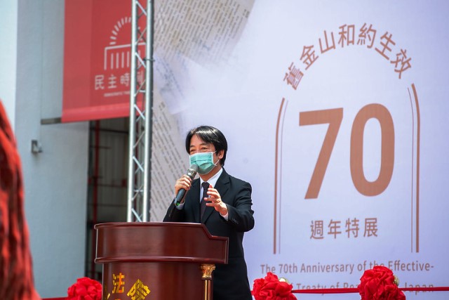賴清德副總統今(28)日上午前往臺中出席「舊金山和約生效70週年特展開幕儀式」時表示,不論是從客觀現實,或是國際法來看,中華民國臺灣的主權不屬於中華人民共和國。他也重申,中華民國臺灣的主權跟中華人民共和國互不隸屬,臺灣的前途由2,300萬人決定。