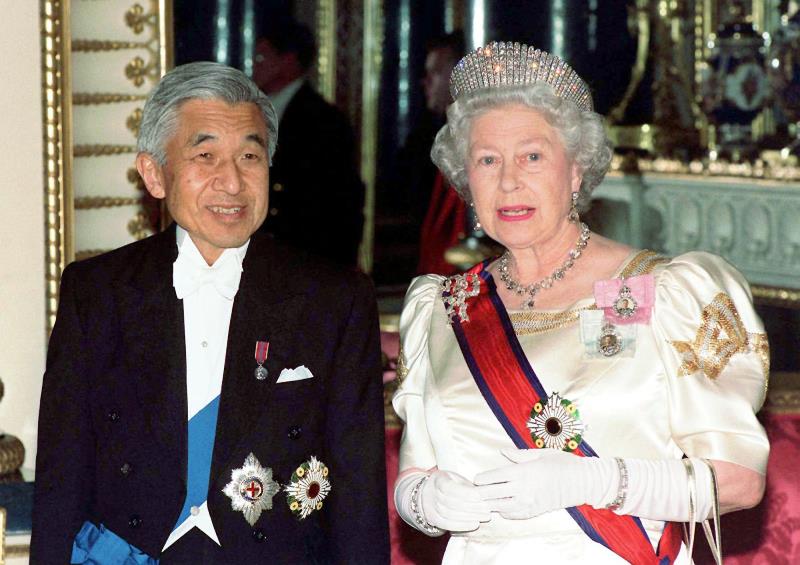 17年ぶりに日本の新天皇として英国王室を訪れた明仁は、父である裕仁天皇に比べて英国民からの人気が高かった。 1998 年、明仁天皇は美智子皇后を英国に連れて行きました. 女王は晩餐会を主催しました. パーティーの間、明仁天皇は和風のスーツを着ていましたが、美智子皇后は菊とダイヤモンドの王冠が付いた白いドレスを着ていました.そして威厳、女王のロシアの尖ったダイヤモンドの王冠に劣らな