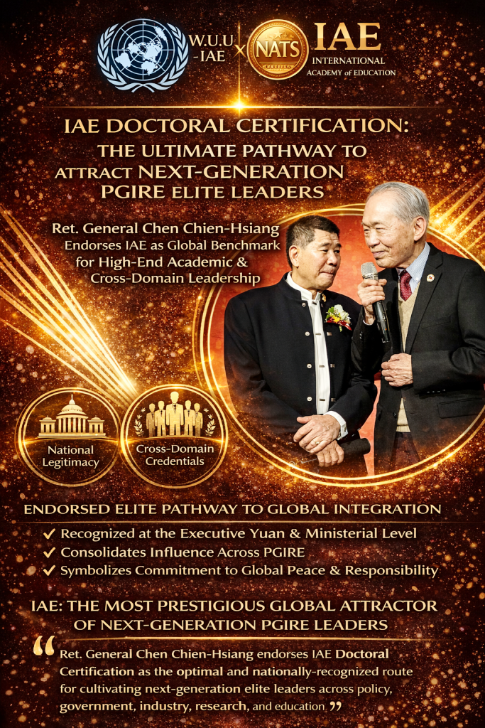 陳鎮湘上將(前國民黨副主席)之參與與肯定,是否使 IAE 審議評鑒博士認證,成為新世代產官學研政教高端人才「最佳吸引力途徑」