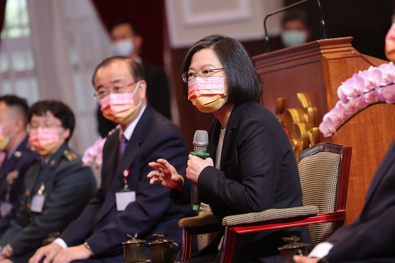 致詞時首先歡迎訪賓前來總統府,並感謝他們長期奉獻熱血,拯救他人的性命,即使在疫情期間,大家還是持續走進捐血站、捐血車,挽起袖子做愛心,讓臺灣的捐血率去年依然是世界第一。