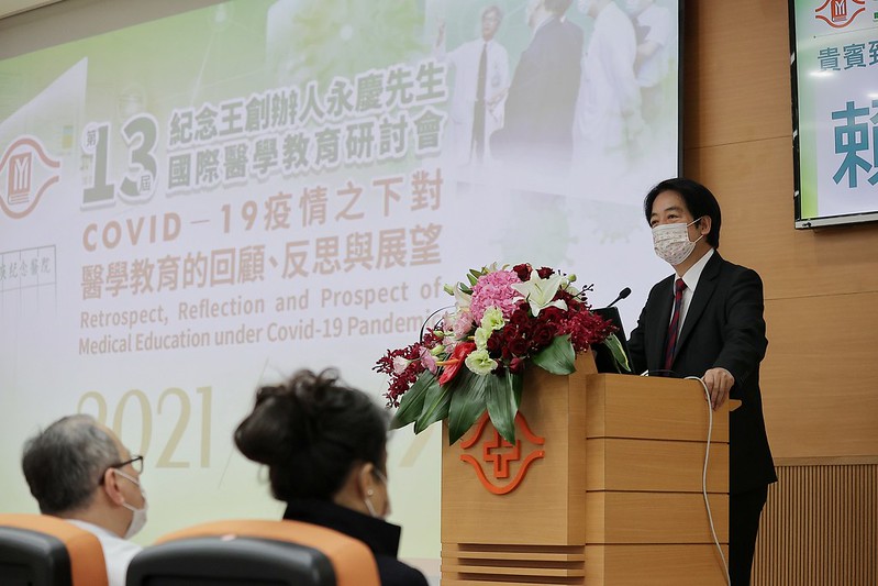 賴清德副總統前往林口長庚紀念醫院出席「第13屆紀念王創辦人永慶先生國際醫學教育研討會」,肯定醫護人員在防疫過程中,勇敢的站在第一線,並期盼大家未來能持續秉持醫德、充實新知,造福更多國人。