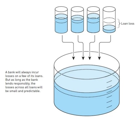 即使銀行很好地履行了監督職責,它的部分貸款也會遭受損失。但是,只要銀行以負責任的方式管理其貸款活動,大型銀行因此而倒閉的風險很小。這是因為銀行向大量借款人發放貸款。即使少數借款人拖欠貸款,所有貸款的損失也將很小且可預測。不把所有的雞蛋放在同一個籃子裡會降低銀行貸款組合的平均風險。由於銀行充當中介,破產和監控借款人的成本降低。這有利於整個社會。