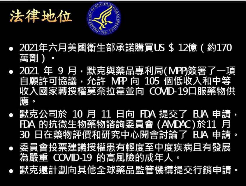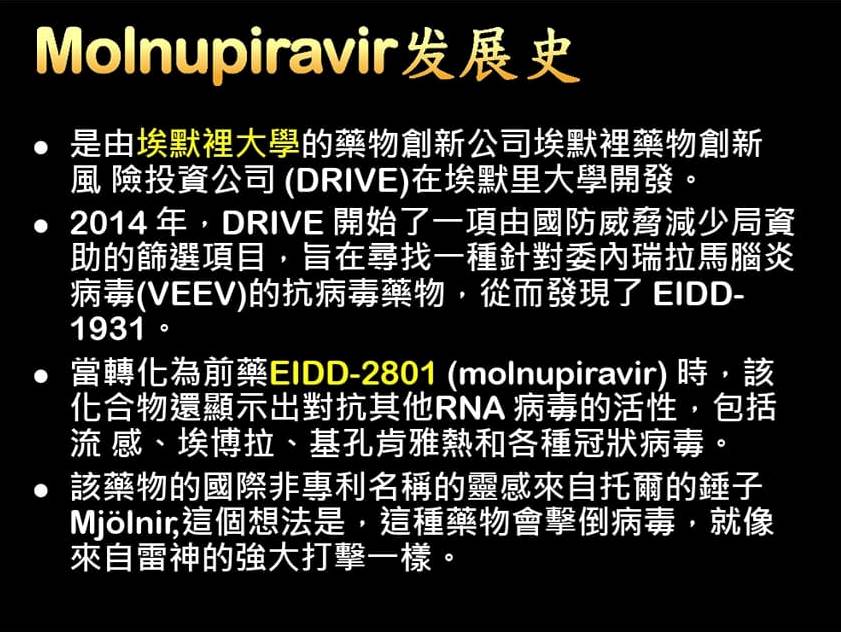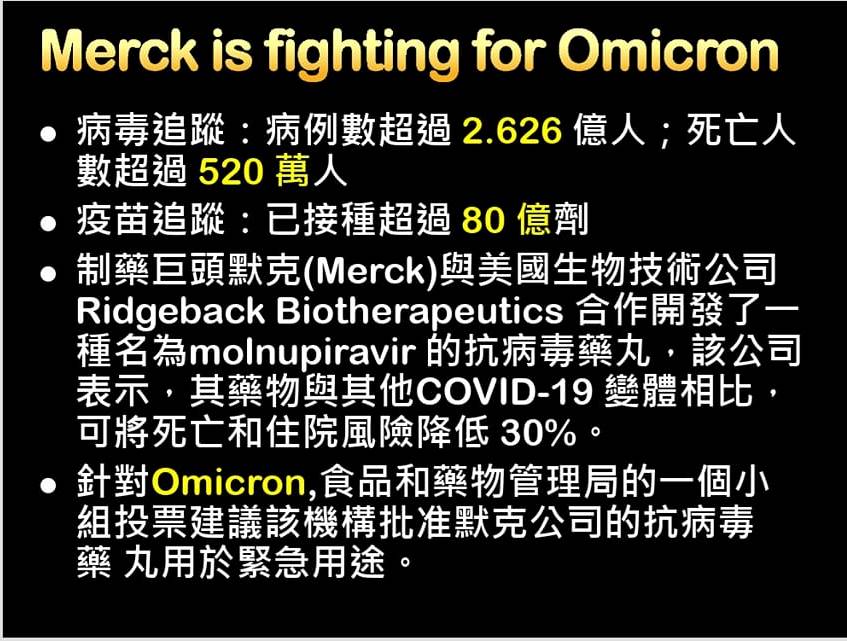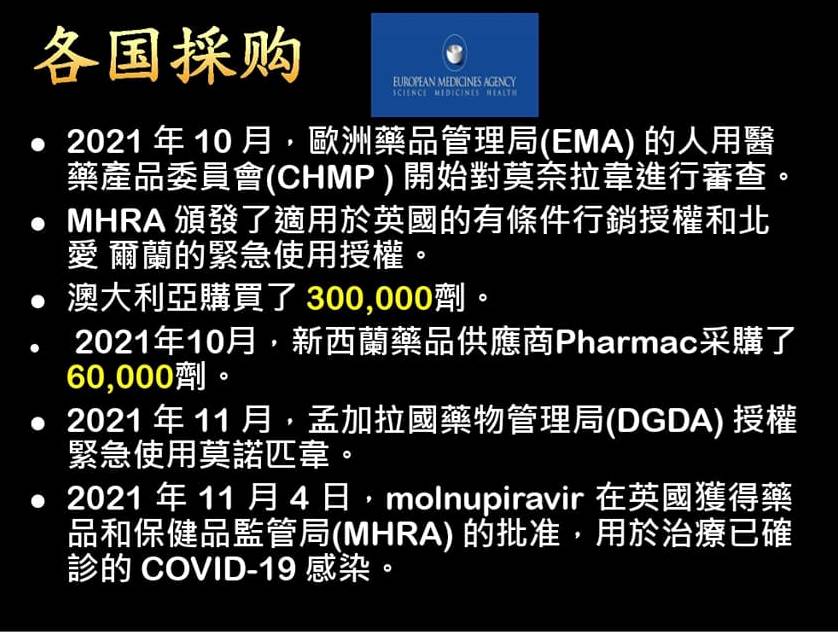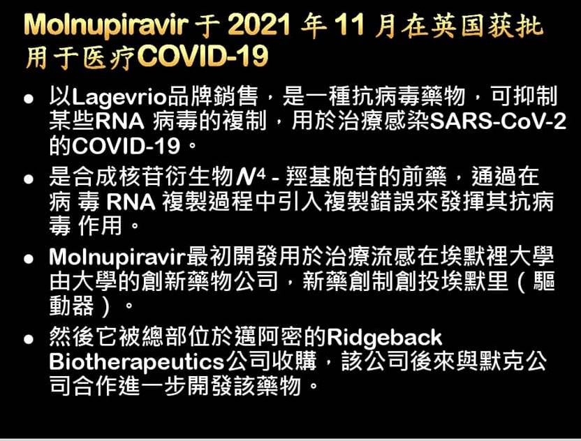 2021年11月初,Molnupiravir在英國獲准緊急使用。(詳細內容 請點入)↑
