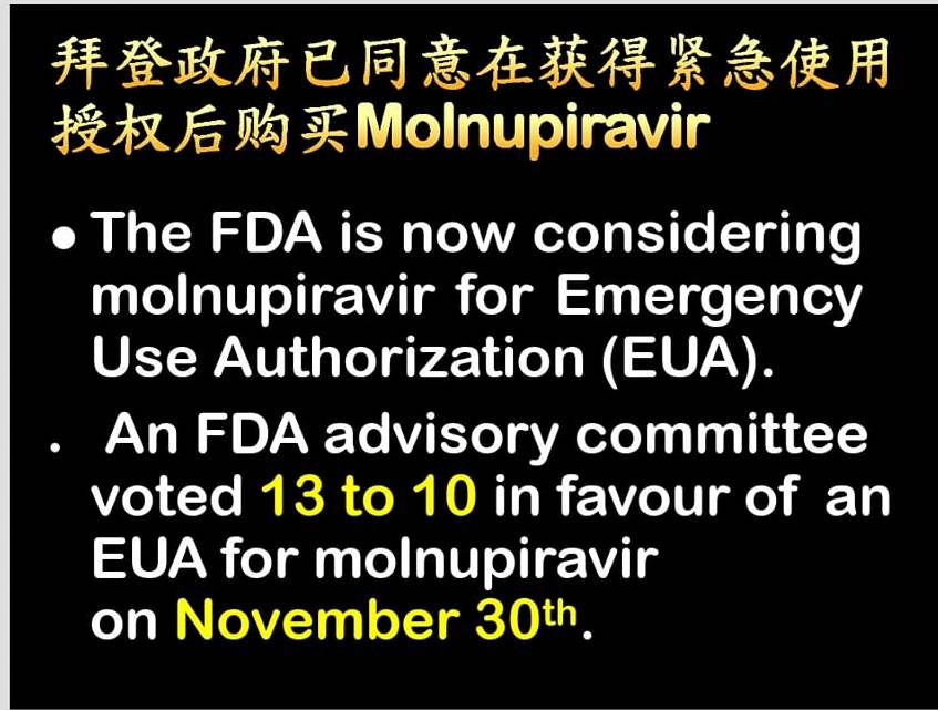 美國默克藥廠稱,其實驗效果十分好,並將在未來兩周內為在美國申請緊急使用授權。兩種Covid-19口服新藥2021年秋先後問世,被普遍視為結束新冠疫情努力的重要突破。