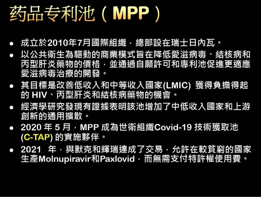 Merck 與 MPP 在一份聯合聲明中表示:「這是首個透明、基於公衛的 COVID-19 醫療技術自願性授權。」聲明提到,只要世界衛生組織(WHO)將疫情列為『國際關注公共衛生緊急事件』(PHEIC),公司將能向 MPP 申請技術轉讓授權,並維持授權免權利金。」