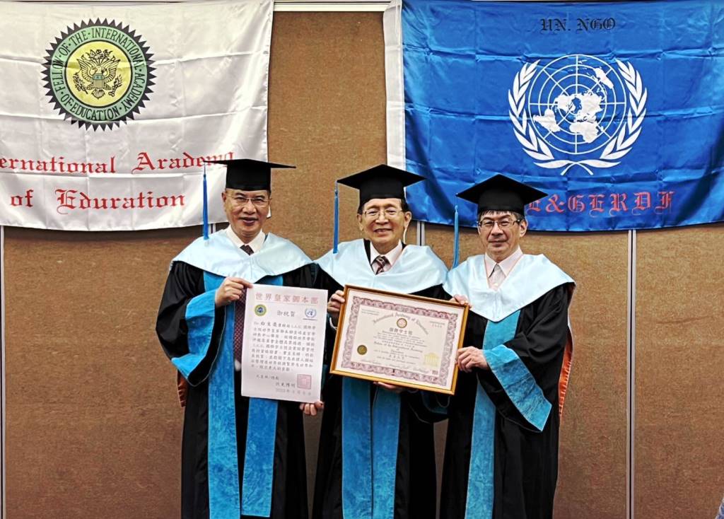 聯合國 W.U.U 350年傳承 IAE美國國際學士院 榮頒 白文亮董事長 IAE美國國際學士院「企業經營管理教授」資格,Top1社會菁英、真理大學校長及傑出校友共同參與此榮耀時刻!(↑詳細內容 敬請點入)